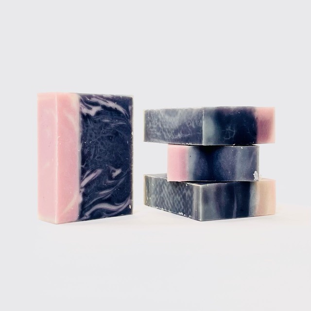 ※せっけんおひとつの値段になります ※簡易ラッピング用の透明袋のご用意がございます(台紙の柄はランダム。無料、画像3枚目)ご希望の方はご注文の際に必要枚数をご連絡ください(ご購入されたせっけんの数を上限枚数とします) 桜フレグランスの奥に夜露を含んだ土のような香りが漂う夜桜ブレンド。 今までの桜ソープに比べてフローラルノートは若干控えめ。青空の元の華やかな桜とはまた違った、しっとり落ち着いた香りをお楽しみください。 原材料/精製⽔・オリーブオイル・ライスブランオイル・ココナッツオイル・パームオイル・⽔酸化Na・チェリーブロッサムFO・レインFO・ベチバー精油・二酸化チタン・マイカ・ウルトラマリン・竹炭 重量/約70g 着香率/0.6% ※サボン屋(仮)のせっけんは化粧せっけんではなく、台所用のキッチンソープとして販売しております。 ※提示された用途以外でのご利用につきましては、購入者様のご判断と責任の下お願い申し上げます。 ※コールドプロセスで作ったハンドメイドソープは、型入れから日が経つにつれ熟成が進み、水分が飛んで軽くなっていきます。表示の重量は、型出し成型した時点での重量です。 ※天然のハーブや蜂蜜、スパイス等を使用している為、日が経ち熟成が進むにつれてせっけんの色が(基本的に濃い色から薄い色に)変化してきます。画像は型出しから切り出し成型、1~2週間後のものを撮影しております。 ※キッチンソープでの販売です。