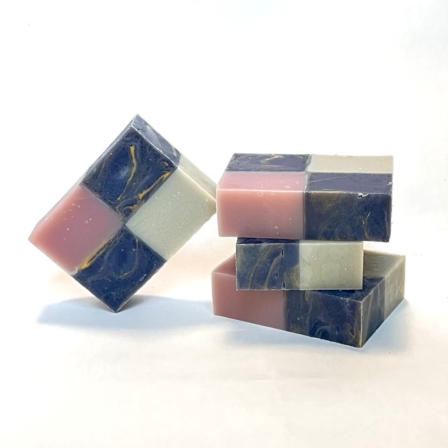 ※せっけんおひとつの値段になります ※簡易ラッピング用の透明袋のご用意がございます(台紙の柄はランダム。無料、画像3枚目)ご希望の方はご注文の際に必要枚数をご連絡ください(ご購入されたせっけんの数を上限枚数とします) 華やかなローズ系ソープ。赤✕ホワイト(うっすら金マーブル)の市松模様です。 全体的にパール感のあるカラーで、ほんのりキラキラとした泡がたちます。 バラの香りと相性のいい、ネロリ・グレープフルーツ・ベルガモットをブレンドしました。トップに柑橘系が香るので、フローラル調ではありますが比較的スッキリとした印象です。 原材料/精製⽔・オリーブオイル・ライスブランオイル・ココナッツオイル・パームオイル・⽔酸化Na・ローズFO・グレープフルーツ精油・ベルガモット精油・ネロリFO・マイカパウダー・竹炭 重量/約70g 着香率/2.0% ※サボン屋(仮)のせっけんは化粧せっけんではなく、台所用のキッチンソープとして販売しております。 ※提示された用途以外でのご利用につきましては、購入者様のご判断と責任の下お願い申し上げます。 ※コールドプロセスで作ったハンドメイドソープは、型入れから日が経つにつれ熟成が進み、水分が飛んで軽くなっていきます。表示の重量は、型出し成型した時点での重量です。 ※天然のハーブや蜂蜜、スパイス等を使用している為、日が経ち熟成が進むにつれてせっけんの色が(基本的に濃い色から薄い色に)変化してきます。画像は型出しから切り出し成型、1~2週間後のものを撮影しております。 ※キッチンソープでの販売です。