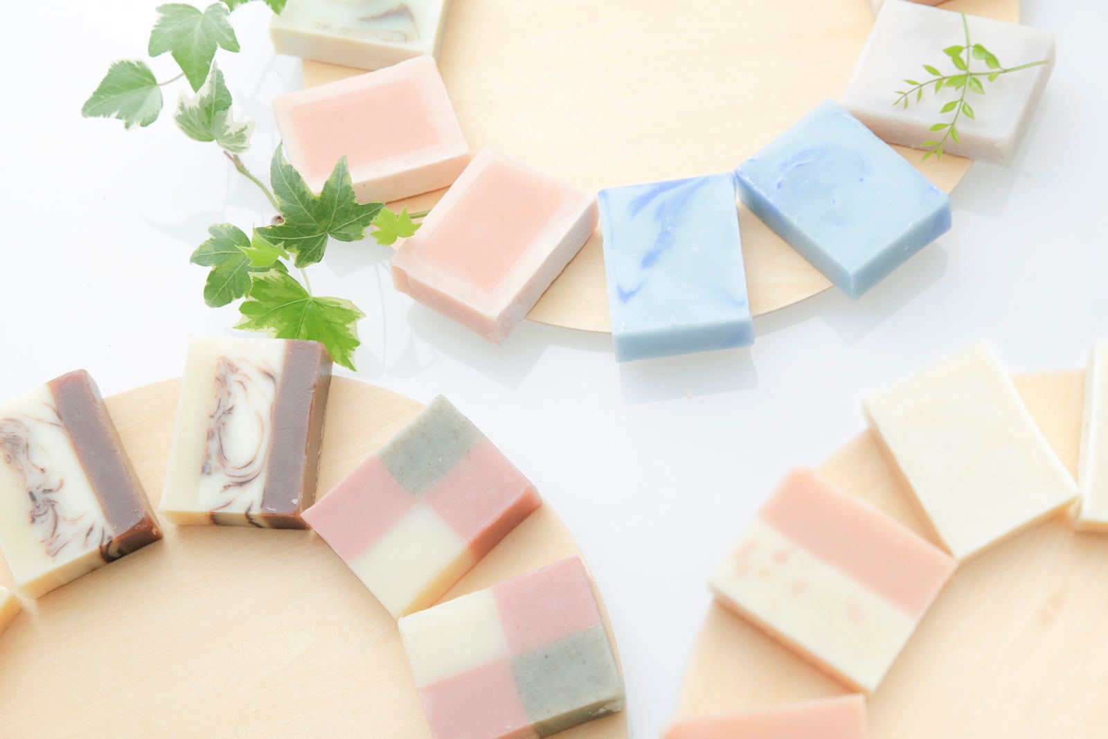 ※天然のハーブや蜂蜜、スパイス等を使用している為、日が経ち熟成が進むにつれてせっけんの色が(基本的に濃い色から薄い色に)変化してきます。画像は型出しから切り出し成型、1~2週間後のものを撮影しております。