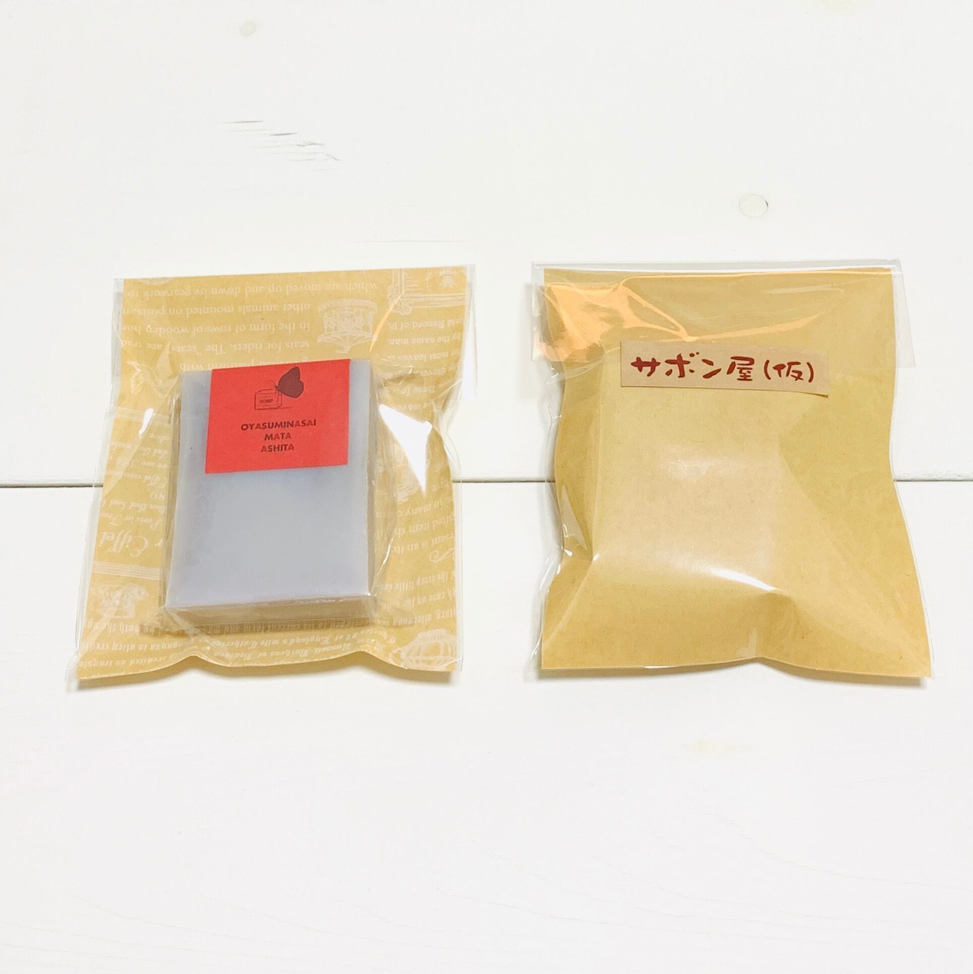※簡易ラッピング用の透明袋のご用意がございます(台紙の柄はランダム。無料、画像3枚目)ご希望の方はご注文の際に必要枚数をご連絡ください(ご購入されたせっけんの数を上限枚数とします)